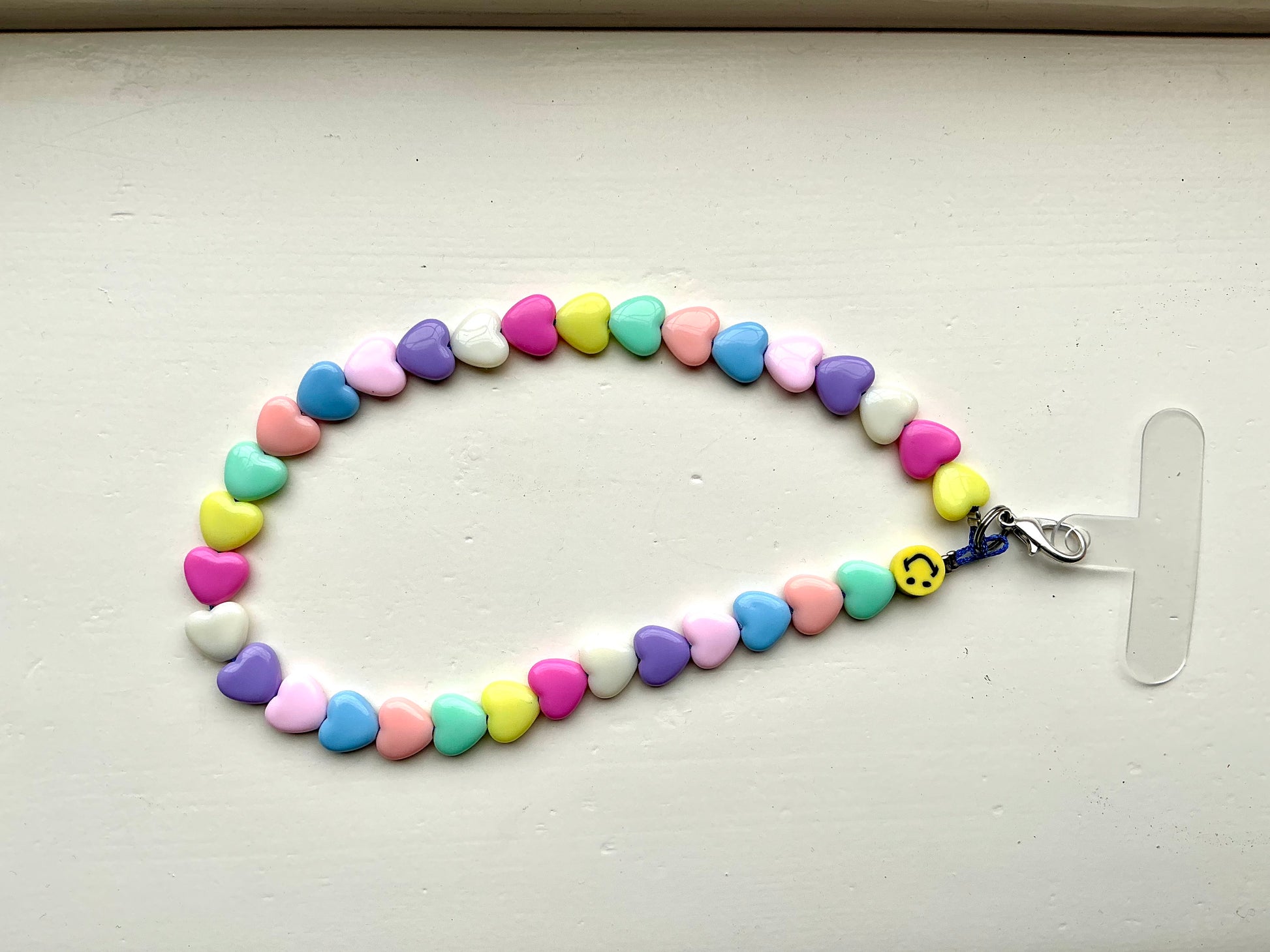 Gekleurde kralen telefoonkoord hartjes gekleurd